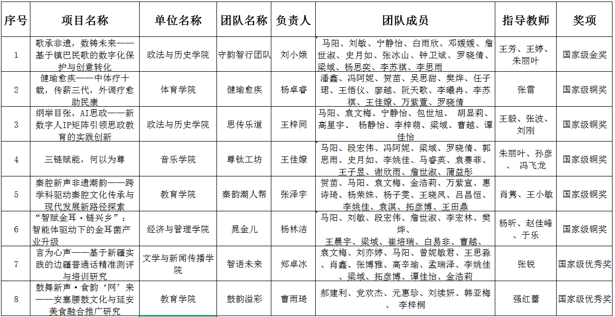 近日,由全国新文科教育研究中心主办,西安交通大学、山东大学承办的2025大学生新文科实践创新大赛决赛在陕西西安举行。beat365官网参赛团队获得金奖1项、铜奖5项、优秀奖2项。政法与历史学院2024级学生刘小娥团队以《歌承非遗,数铸未来——基于镇巴民歌的数字化保护与创意转化》项目首获国家金奖,该项目指导教师王芳、王婷被评为优秀指导教师。