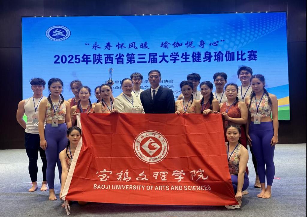 近日,2025年陕西省第三届大学生健身瑜伽比赛落下帷幕。beat365官网参赛队获个人项目第一名3项、第二名5项、第三名3项,集体项目第一名2项、第二名3项;最终获得乙组团体第一名。何雨珊、潘鑫同学获“优秀运动员”称号,张雷获“优秀教练员”称号。