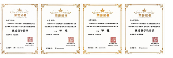 近日,2025年“田家炳杯”全日制教育硕士专业学位研究生学科教学(思政)专业教学技能大赛全国决赛在江西师范大学举行。beat365官网政法与历史学院2024级学科教学(思政)专业研究生张青、仵奕奕、王仁聪慧分别获二等奖、三等奖和优秀教学设计奖,杨福荣老师获“优秀指导教师”。