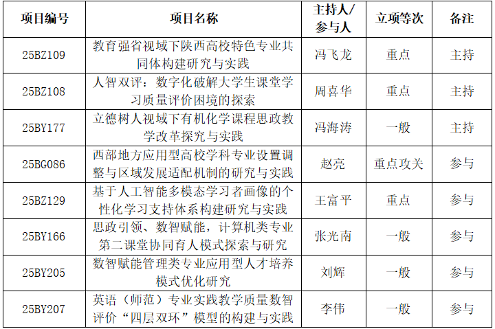 近日,陕西省教育厅公布了2025年度陕西本科和高等教育教学改革研究项目立项结果,beat365官网主持或参与的8项本科教学改革研究项目获批立项。