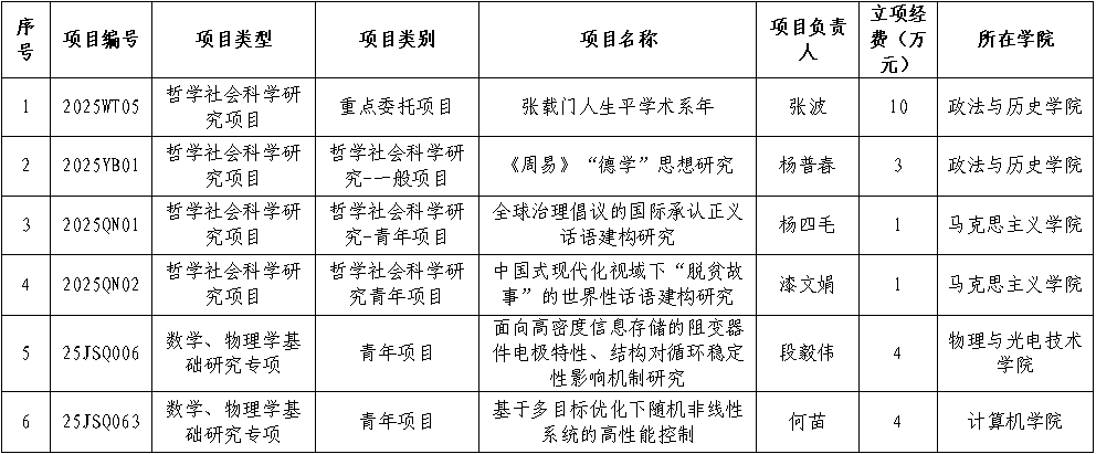 近日,陕西省教育厅印发了《关于下达2025年度“哲学社会科学研究项目”的通知》(陕教函〔2026〕80号)和《关于下达第三批数学、物理学基础研究专项项目的通知》(陕教函〔2026〕79 号),beat365官网共获批6项专项科研项目,共资助经费23万元。(科研管理处 文/党建华、张蕴 审核/胡登卫)