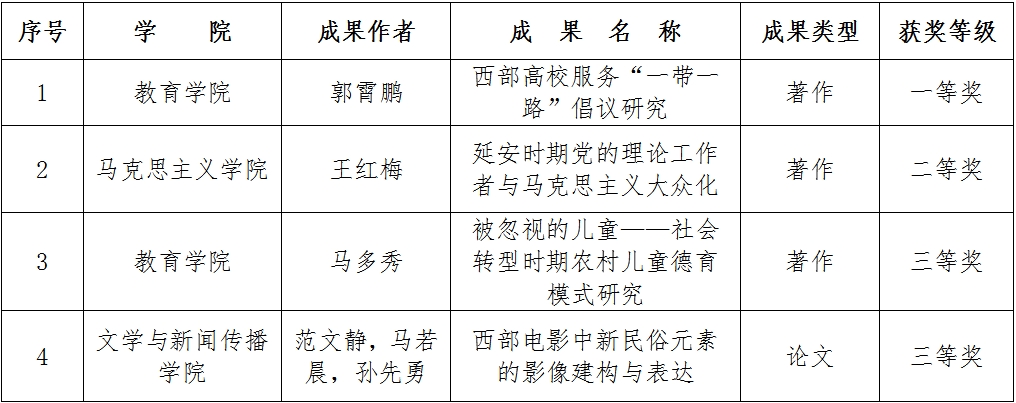 陕西省哲学社会科学优秀成果奖是全省哲学社会科学界规格最高的政府奖项,每两年评选一次,旨在奖励在理论研究、学术创新及服务经济社会发展等方面取得突出成就的成果。该奖项评审严格、标准高远,历来被视为衡量高校及科研机构研究水平的重要标尺,对激励广大社科工作者深化重大理论与现实问题研究、推动成果转化、促进哲学社会科学繁荣和优秀成果持续涌现,具有重要的引领与支撑作用。(科研管理处 文/杜红珍 审核/胡登卫)